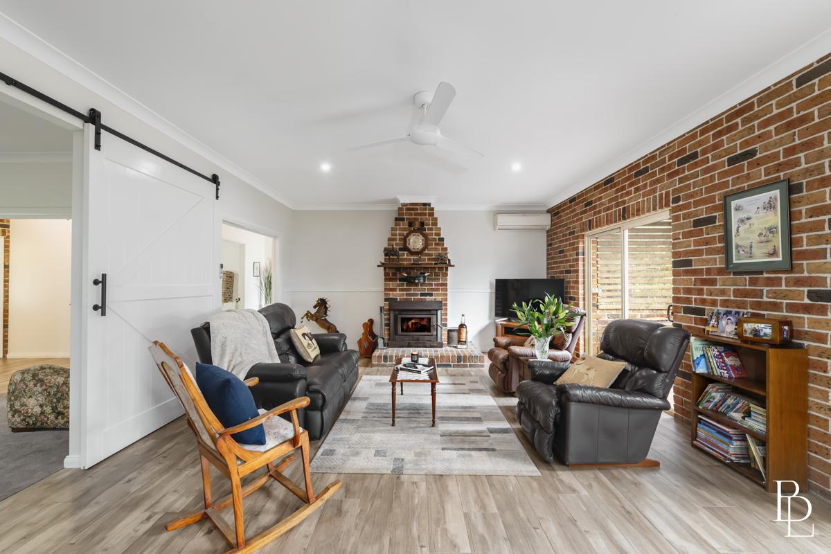 The homestead itself is a warm, welcoming country home, renovated in 2022 and designed for both family life and quiet retreat. Four generous bedrooms (including a master with ensuite) and an internal laundry with additional WC cater easily to busy households. At the heart of the home, a sunlit modern country kitchen invites long, slow meals and baking days, flowing to relaxed living spaces anchored by a large fireplace, perfect for curling up on crisp winter evenings.