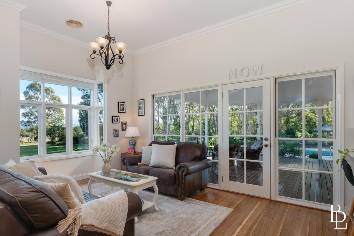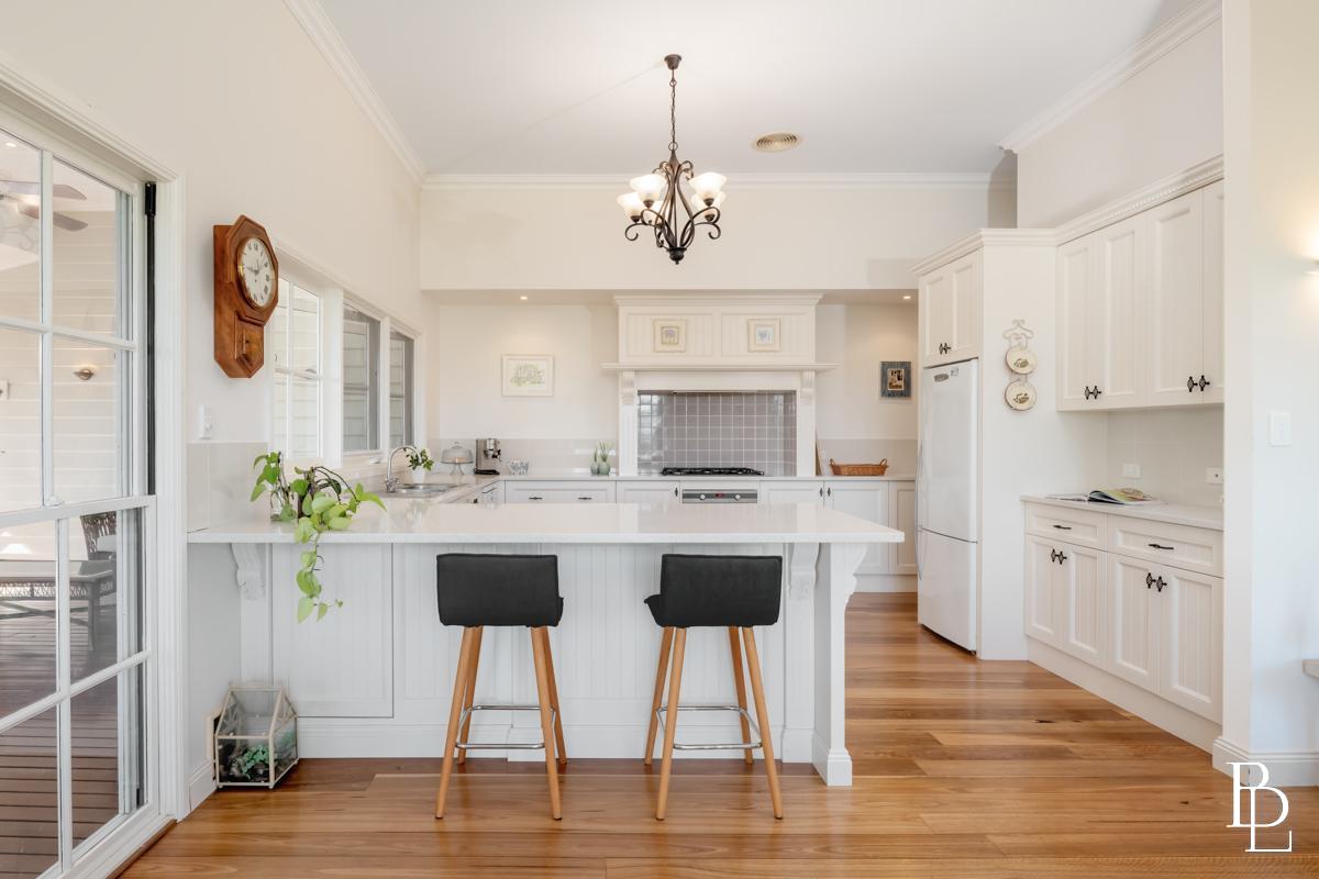The home itself is rich in character and warmth. Timber floorboards, high ceilings and graceful bay windows reflect a Harkaway and Victorian homestead influence, blending classic country charm with comfortable family living. Every room feels inviting and well considered, with beautiful proportions and natural light throughout.