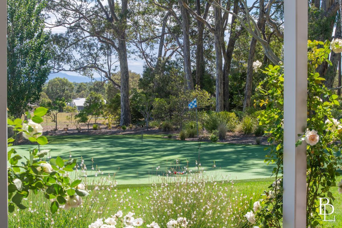 At the heart of the home, the kitchen looks directly over the expansive covered deck, an entertainer’s dream that flows effortlessly to the pool area beyond. From here, the view unfolds across the property, where the full-size synthetic putting and chipping green with bunker sits proudly in the landscape. It is a visual feast and a space designed for enjoyment, whether hosting friends, relaxing with family or simply taking in the surroundings.