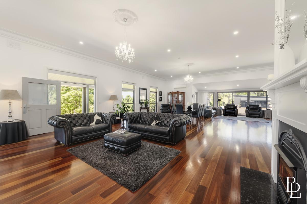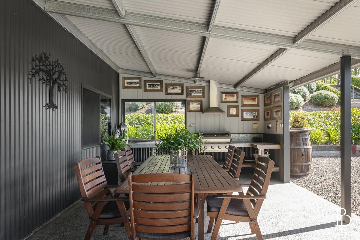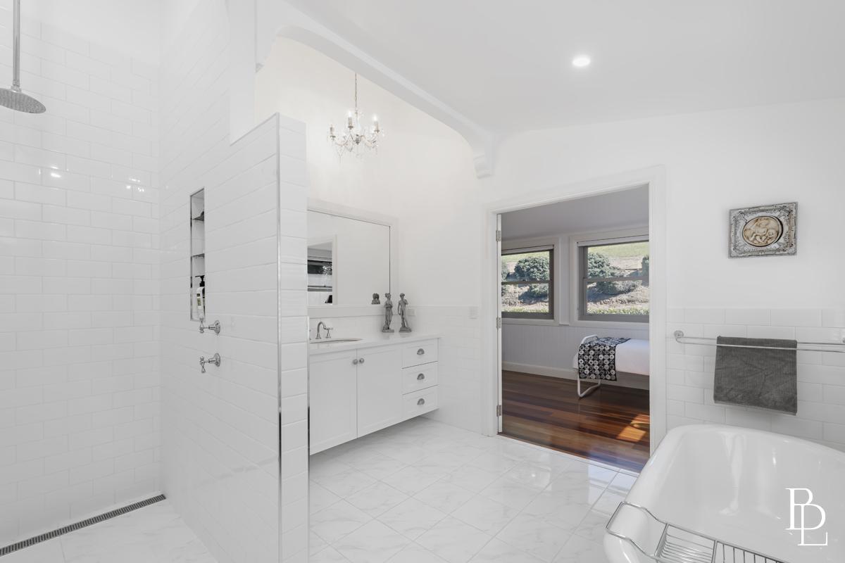 Step into the elegant Georgian-style home, boasting three bedrooms and two spacious modern bathrooms. With its open-plan layout and soaring ceilings, the residence exudes both grandeur and comfort. The generous master suite, complete with an ensuite and walk-in robe, offers a serene retreat. Meanwhile, the expansive country kitchen, equipped with modern appliances and a generous kitchen island/breakfast bar, seamlessly transitions into the dining and living areas. A welcoming fireplace at centre stage of the living room ensures year-round comfort and ambiance. Relax on the wrap-around verandahs and savour breath-taking sunsets after indulging in delightful meals prepared in the heart of the home.